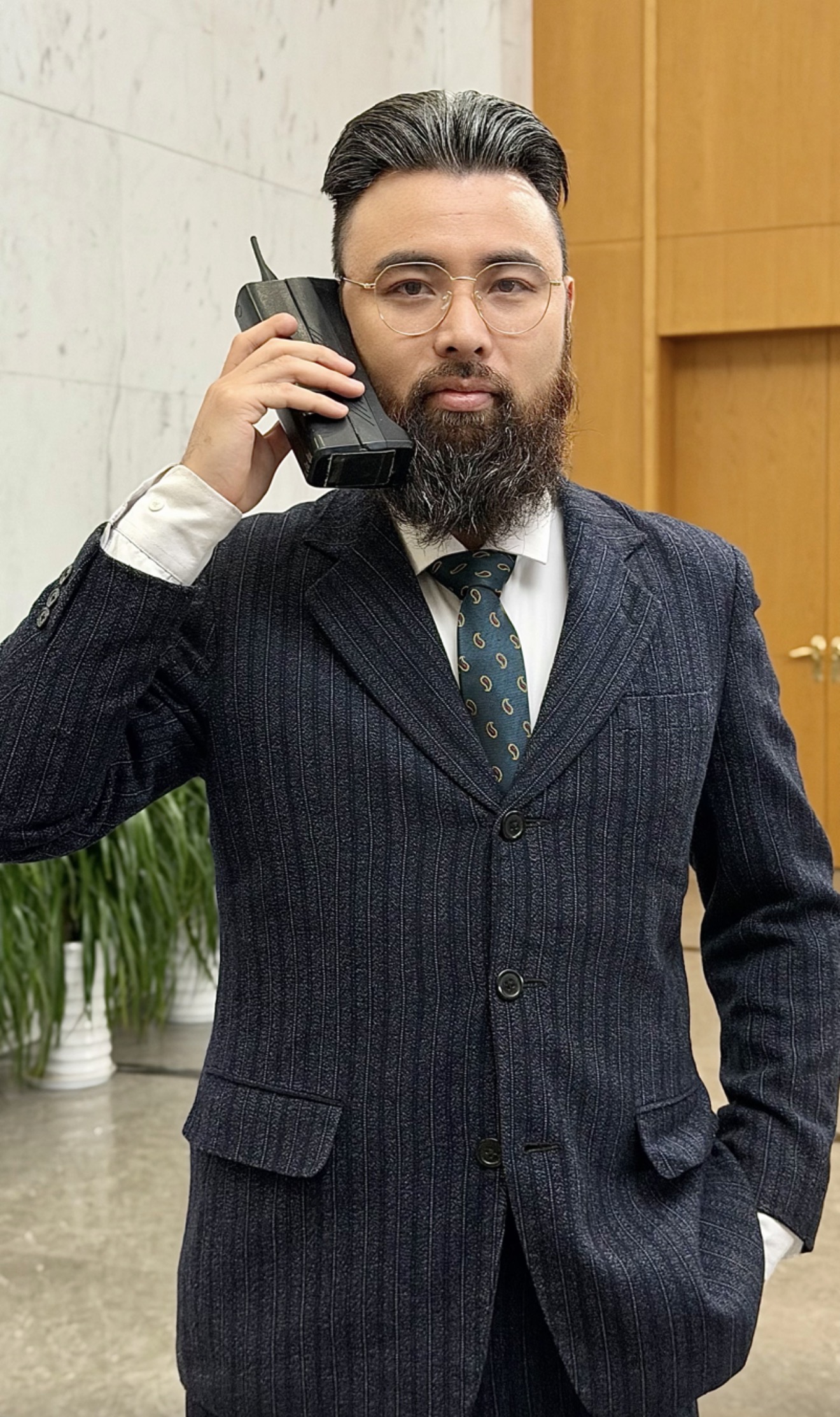 “娇娥”是妻子给他起的艺名,与他本人形象形成十足的反差。他身材魁梧,满脸络腮胡子,这个长相为他匹配上了萨满、蒙古可汗大将军、商业大佬,甚至修仙男频剧中男主角的爹等角色。
